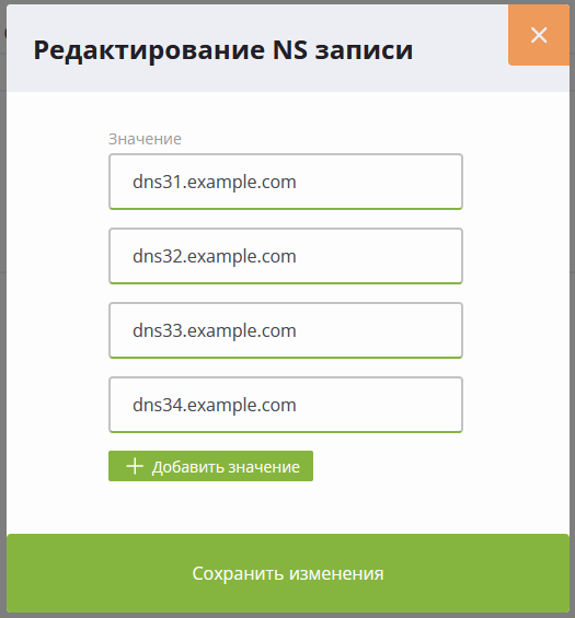 - В открывшемся модальном окне укажите требуемые NS записи: